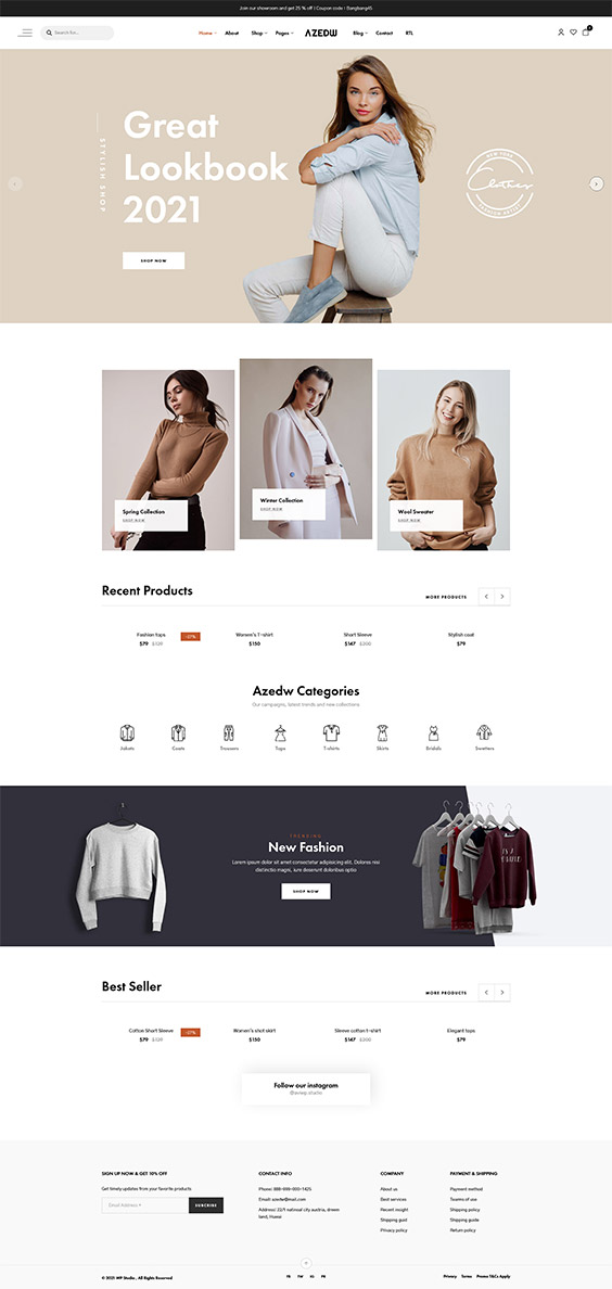 Modern, Elegant & Beautiful home pages for your shop. Easy to customize and well organize code ready to use
