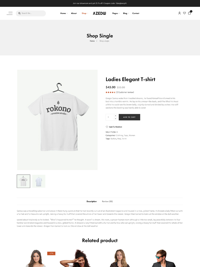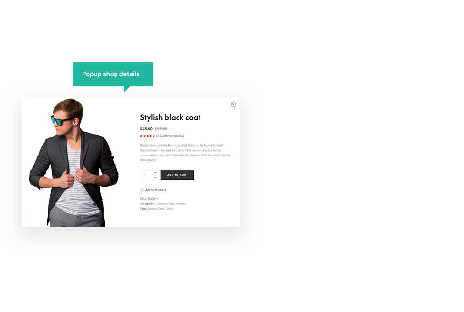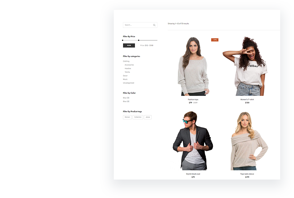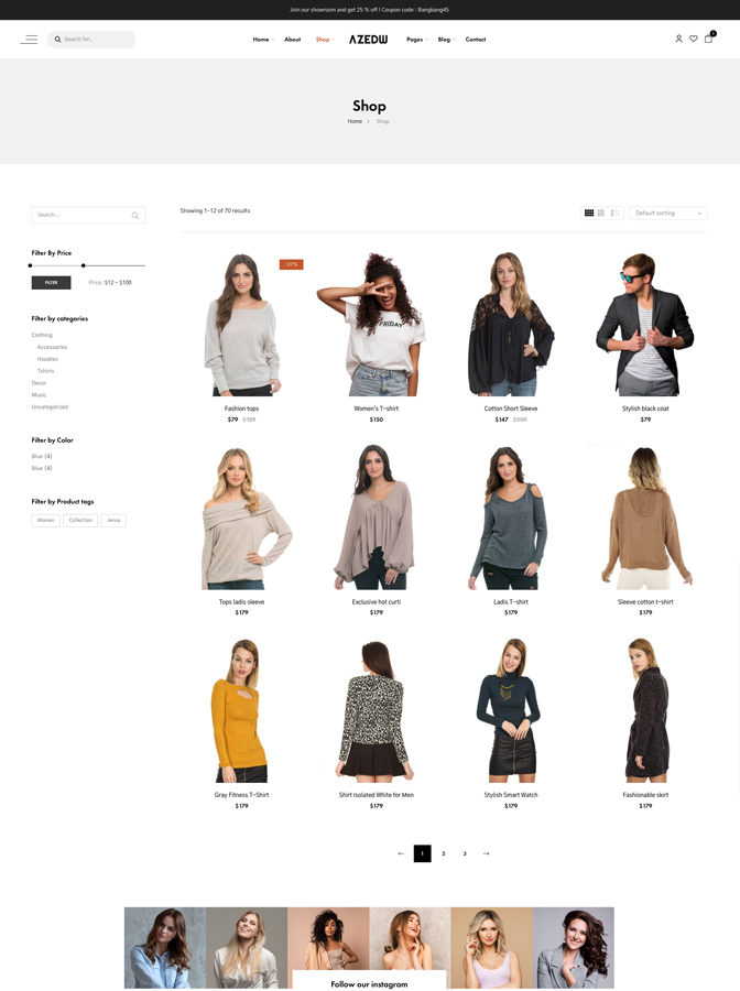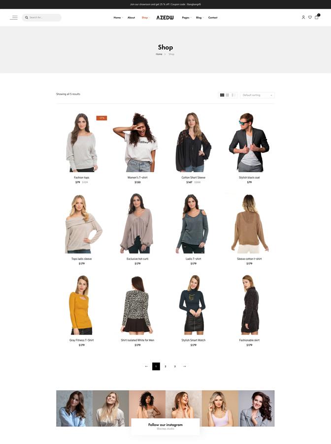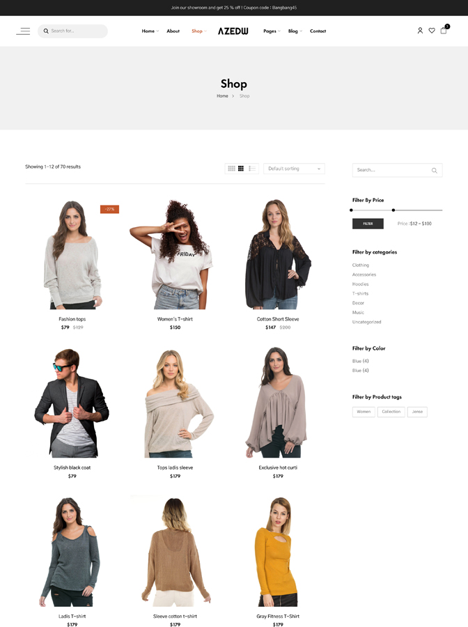 Shop full width, shop left sidebar, shop right sidebar Shop single, pop up for shop details, etc