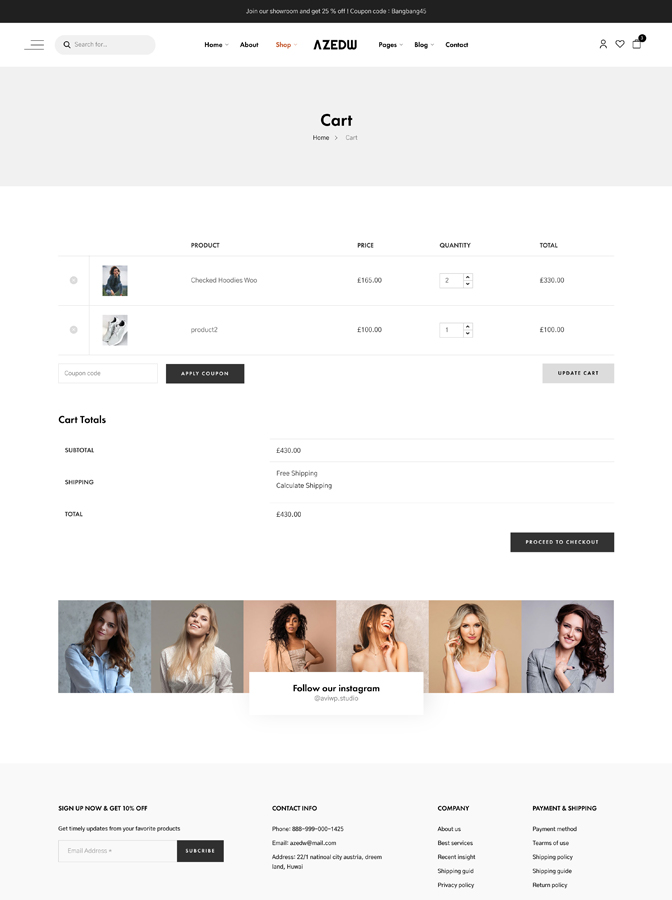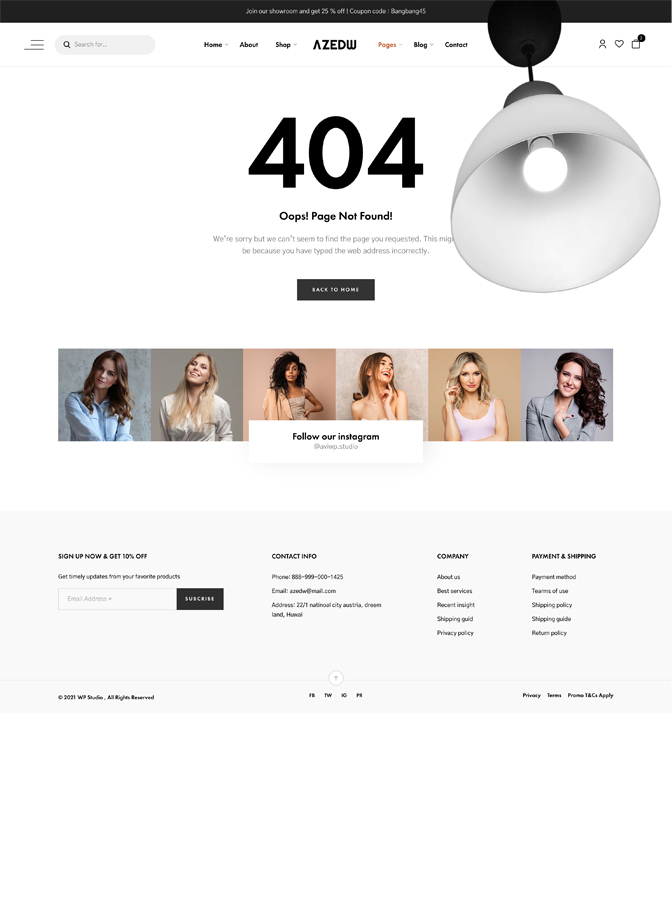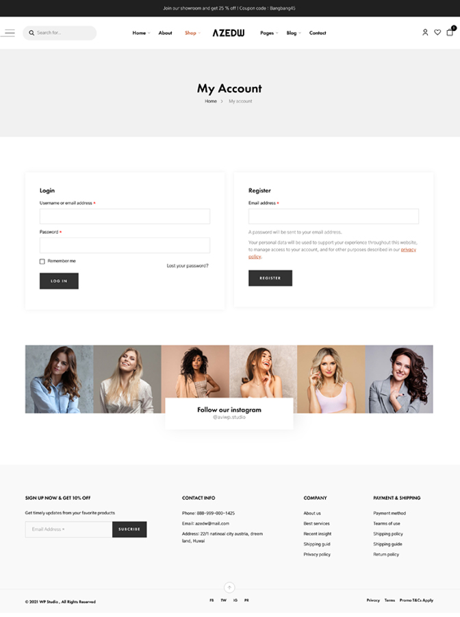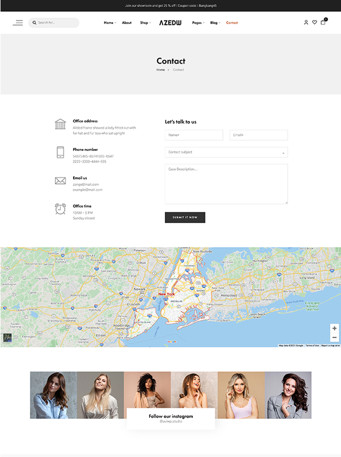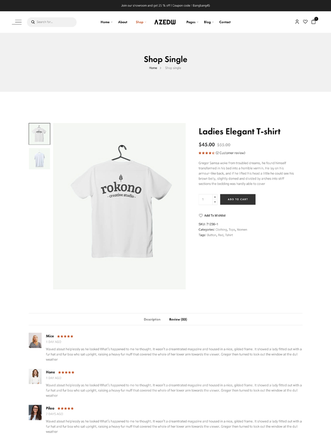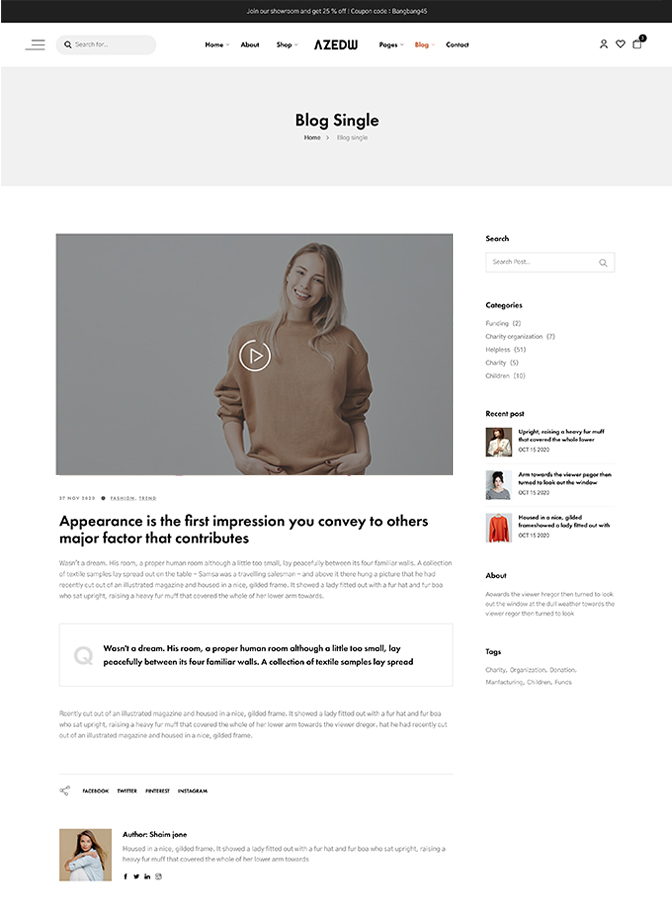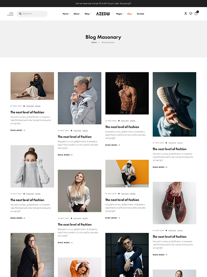 Shop full width, shop left sidebar, shop right sidebar Shop single, pop up for shop details, etc